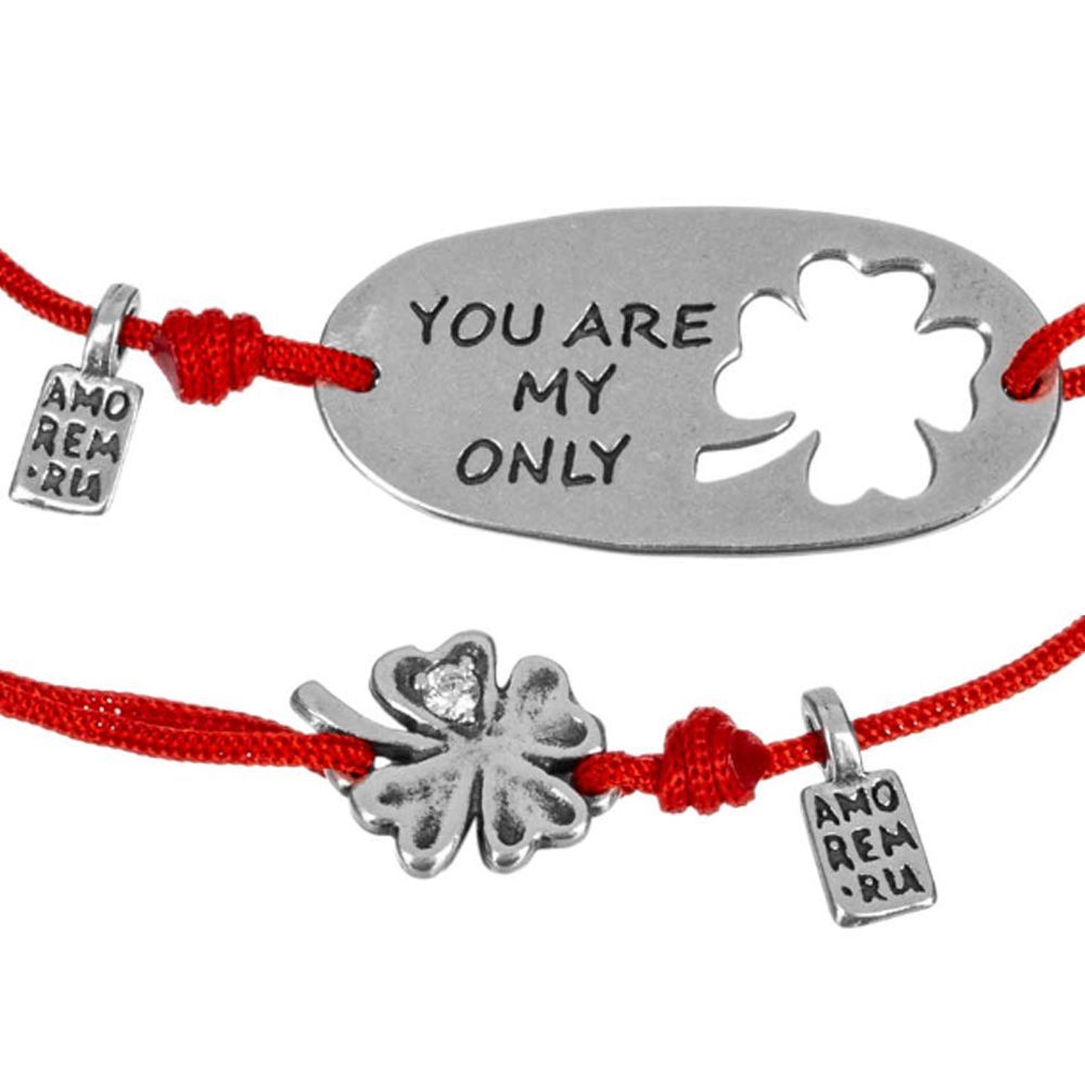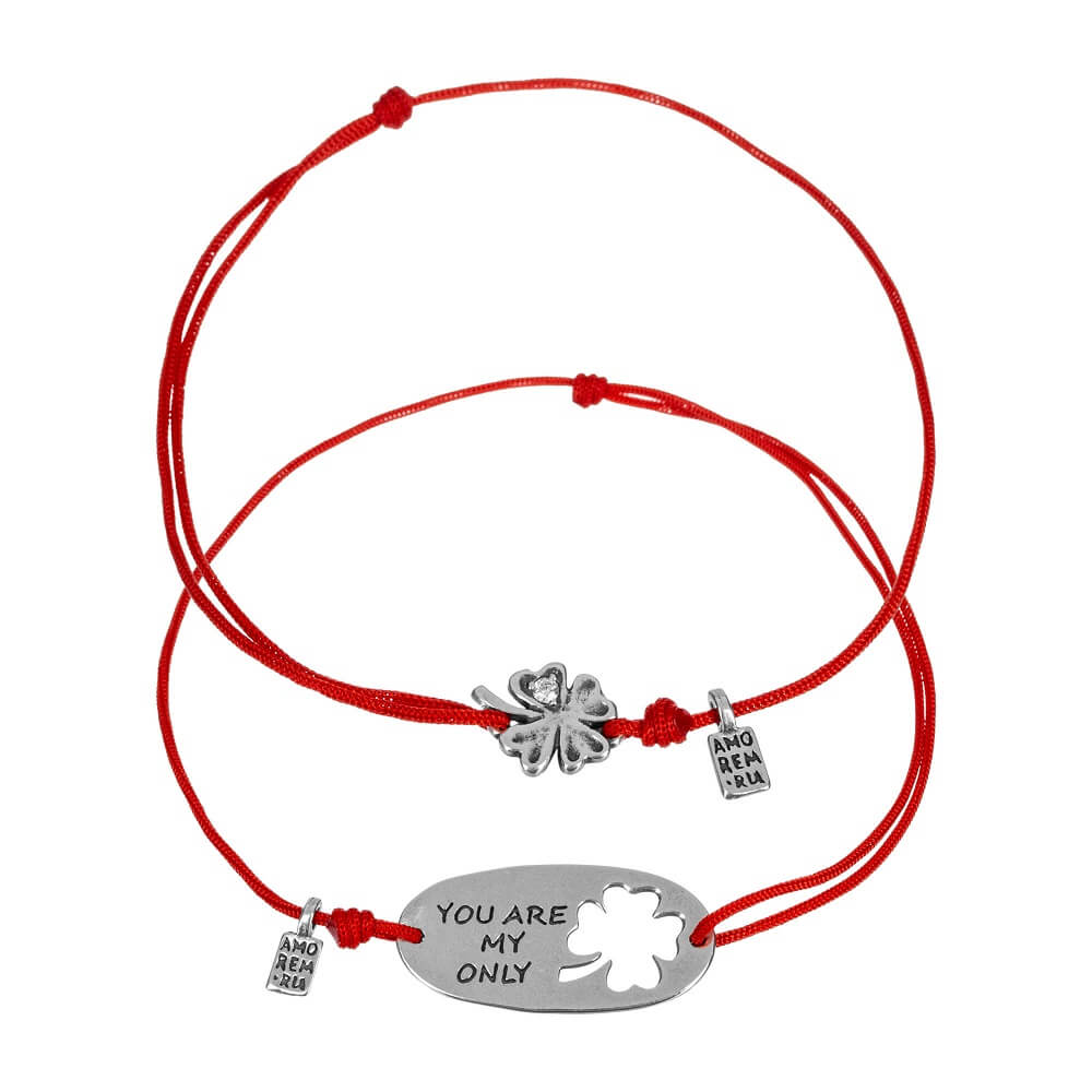 Парные браслеты Клевер с фианитом, серебро 925