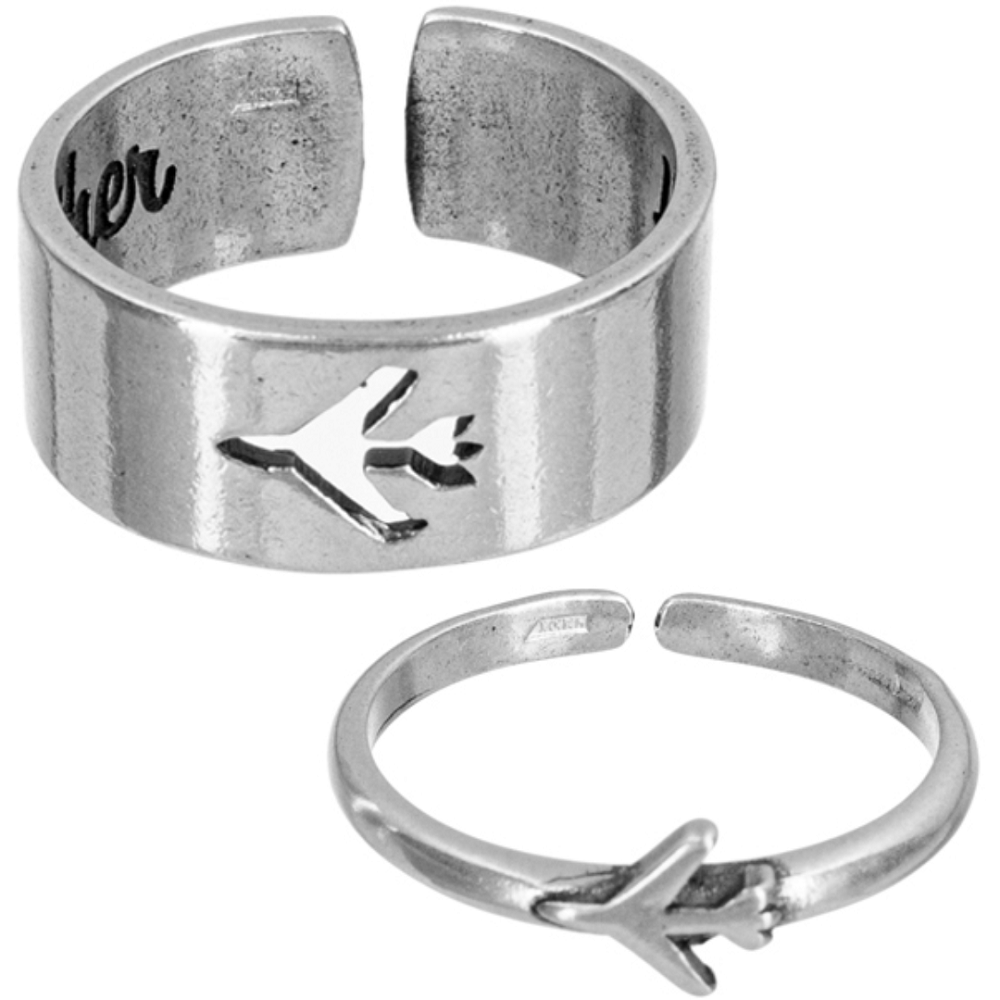 Широкое кольцо с рисунком самолета. На внутренней стороне кольцо имеет гравировку "Flying together".