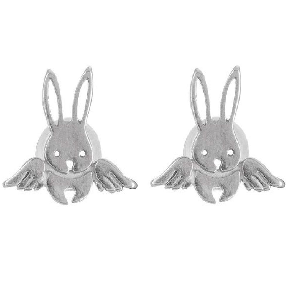 Серьги пусеты Зайка с крыльями, серебро 925 — символ нежности и вдохновения