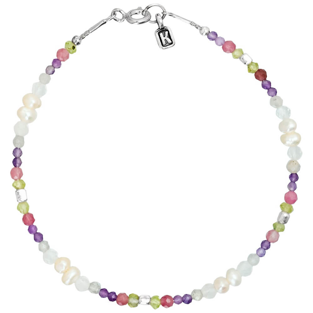 Браслет "Berry Mix" из жемчуга,аметиста, хризоколлы, лунного камня, турмалина и серебра 925