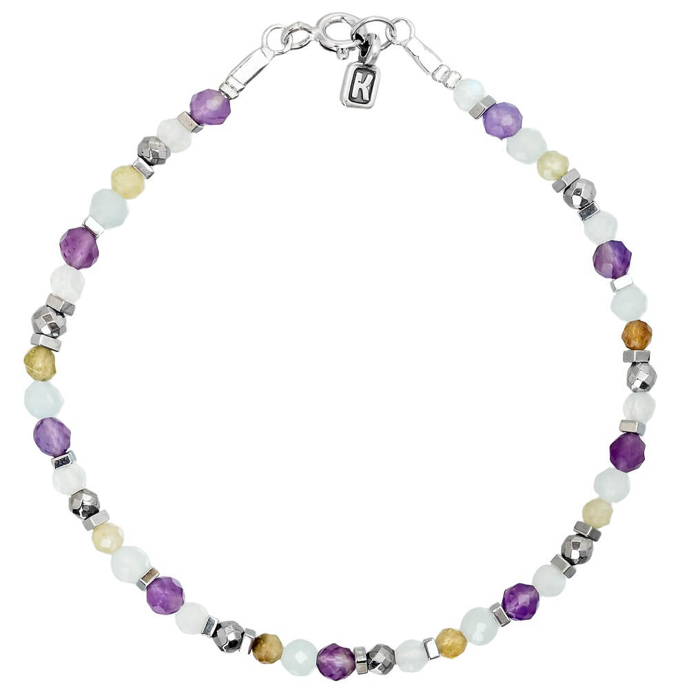 Браслет "Four seasons" из аквамарина, аметиста, зелёного граната, лунного камня, гематита и серебра 925