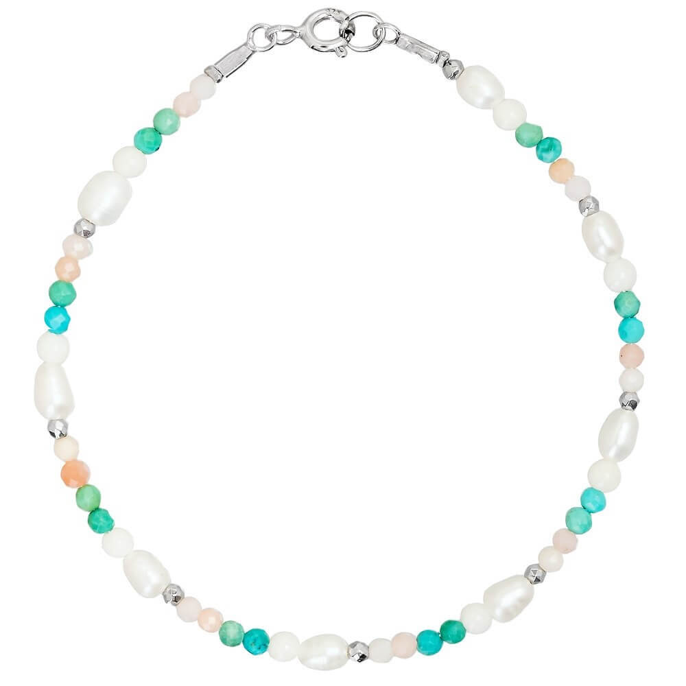 Браслет "Sea of love" из жемчуга, розового опала, бирюзы и серебра 925